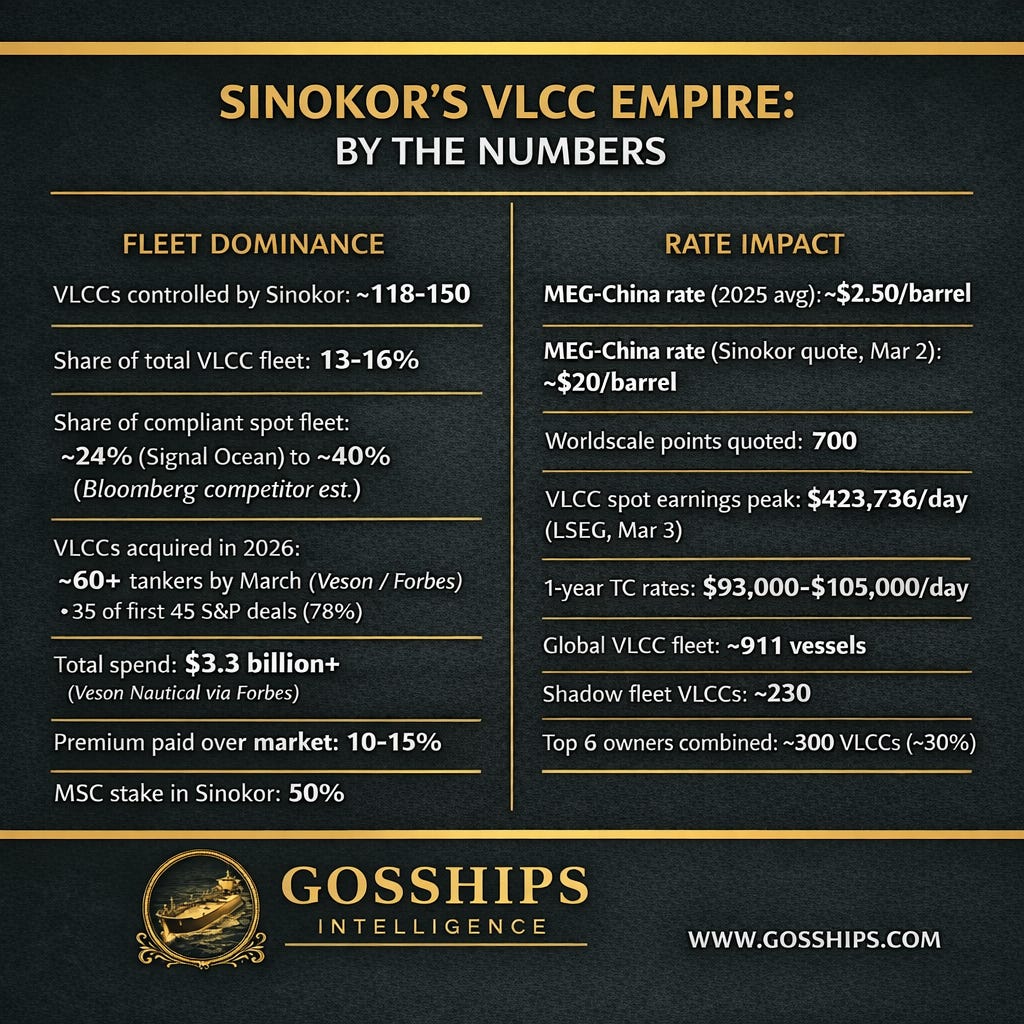 Sinokor Merchant Marine has done something no single operator has ever done in the modern VLCC market: accumulated enough tonnage to dictate pricing on the world’s most important crude oil shipping route.
