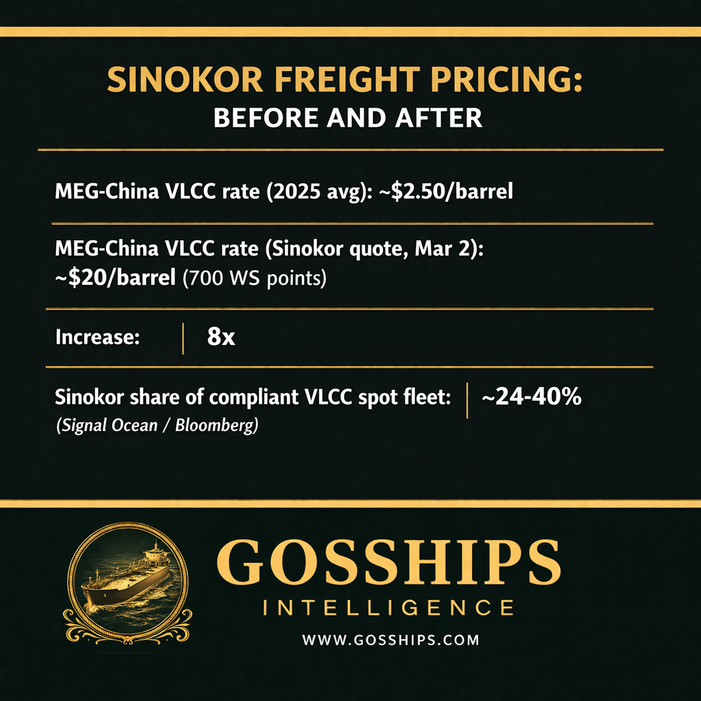 This is not a war premium. War premiums affect everyone equally. This is one company, backed by the world’s largest shipping empire, controlling enough of the available tanker fleet to set the price.